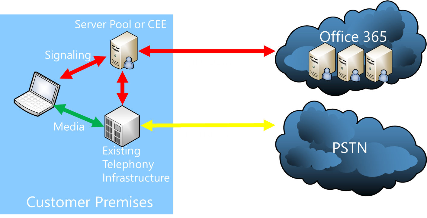 From the above diagram there are many options for the deployment on customer premises. Existing PSTN connectivity can be provided through existing telephony infrastructure, existing (or new) PSTN connectivity and do not forget about SIP. These are all supported solutions for Skype for Business today and continue to be supported solutions for use with Cloud PBX. We even have the same option to use multiple methods of PSTN access to provide many flexible options for end users to make and receive phone calls.